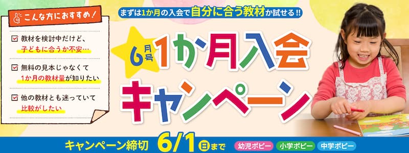 おためし感覚で、小学ポピーがどんな感じか試してみたい方は、1ヶ月限定入会キャンペーンの利用をおすすめします!